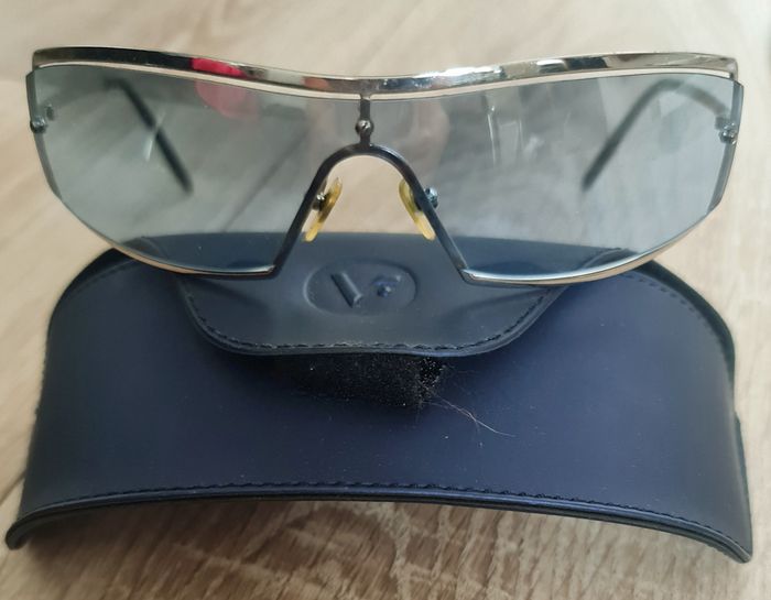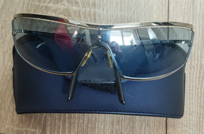 A la vente, en bon état, cete jolie paire de lunettes de soleil vintage/retro, façon masque, monture métallique et verres bleu ciel. Marque "VOGUE" (VO 3425-S 323/7C). En semaine, cet article peut vous être déposé à l'Espace Européen de l'entreprise, Schiltigheim.