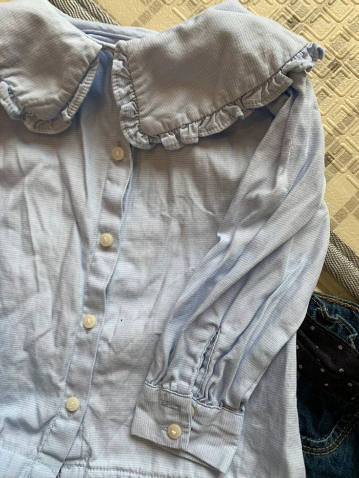 Short en jean taille réglable à l’intérieur avec ceinture à nouer+ chemisier a col Parfait état pour la tenue #bébéfille6mois