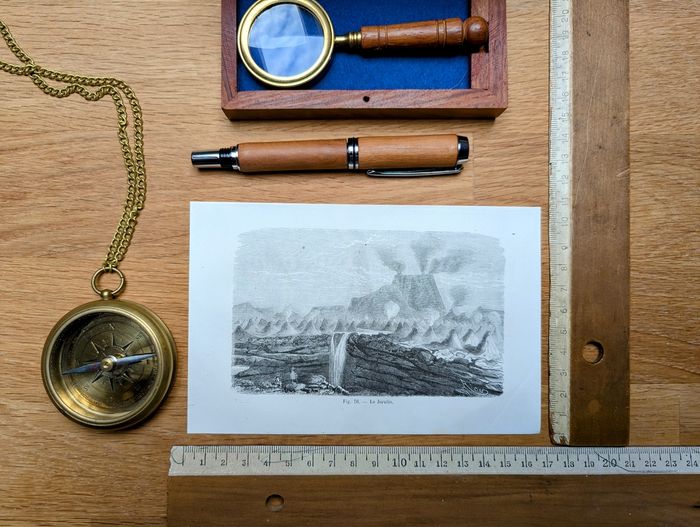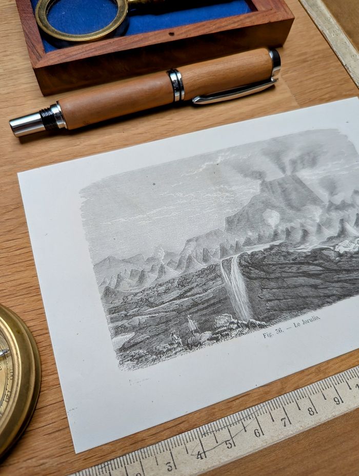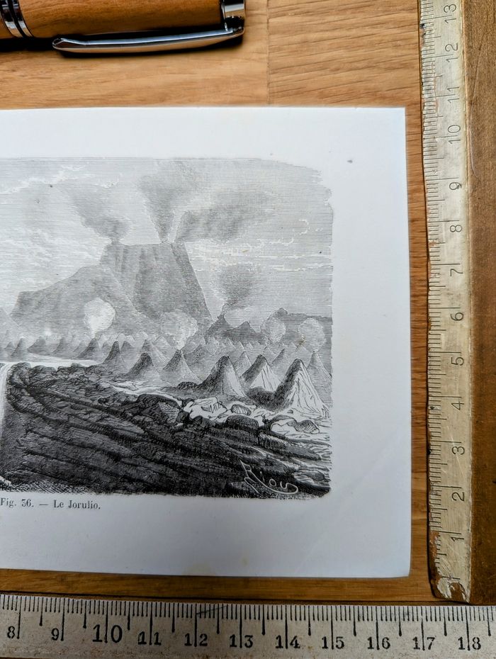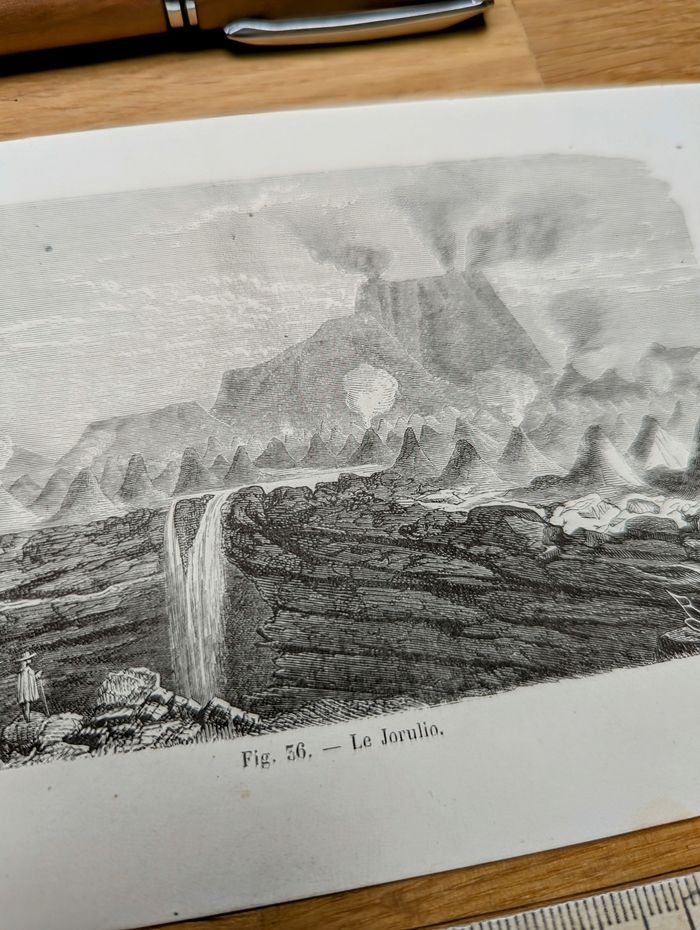 Voyagez dans le temps et partez explorer le volcan Jorullo (El Jorullo), dans le Michoacán, au centre du Mexique, avec cette magnifique gravure d'Edouard Riou (1833-1900)