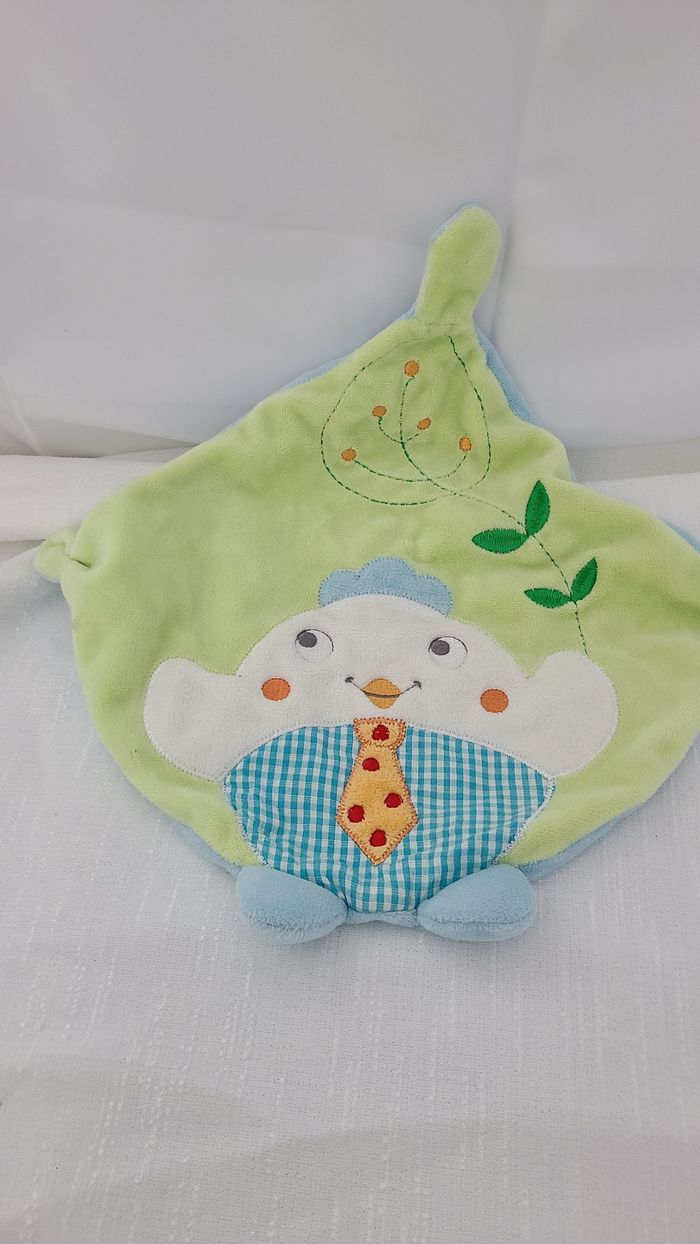 Doudou plat oiseau poule poussin vert Nicotoy Simba - photo numéro 1