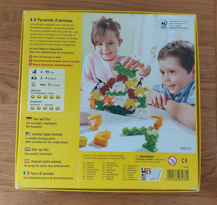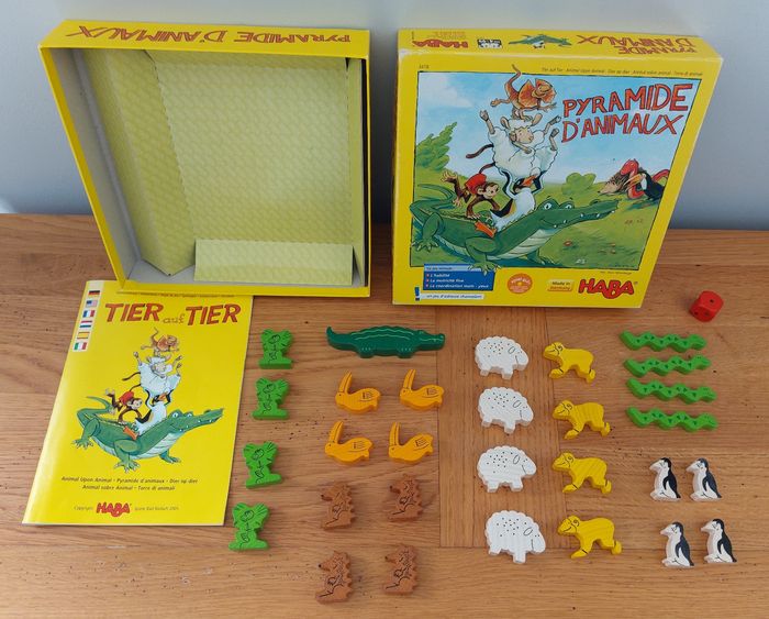 Pyramide d'animaux Jouet en bois Dès 4 ans marque : Haba Il est complet Très bon état Ce jeu stimule l'habilité la motricité fine la coordination main - yeux Jeu de société