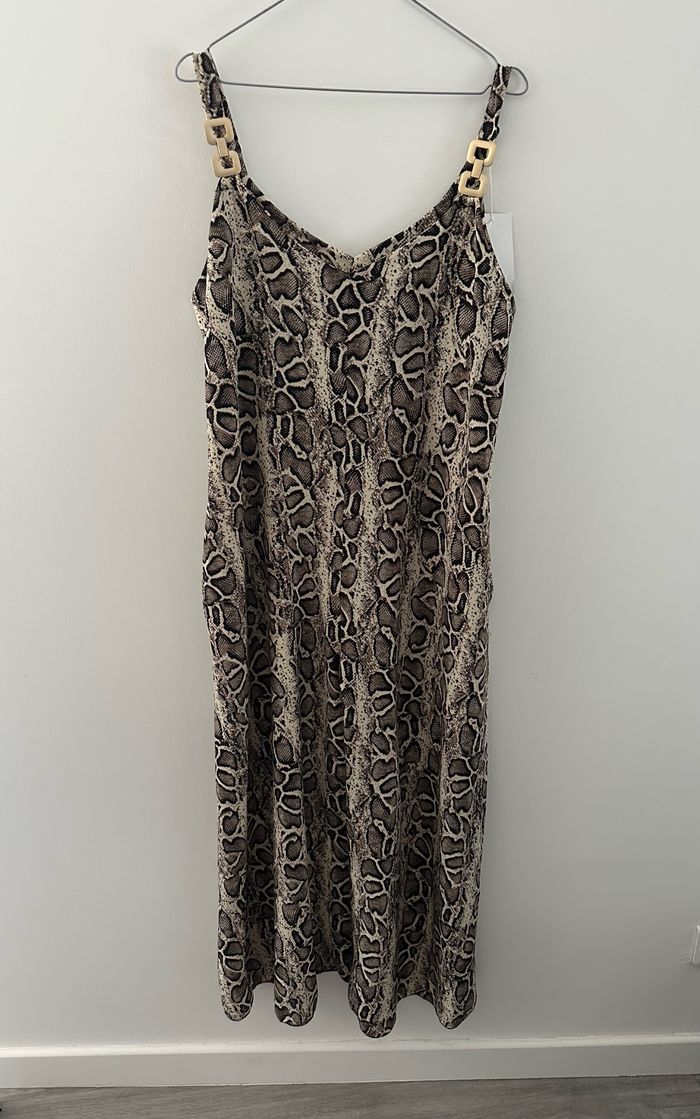 Combinaison longue fluide jambe large python serpent beige crème et noir TU - photo numéro 2