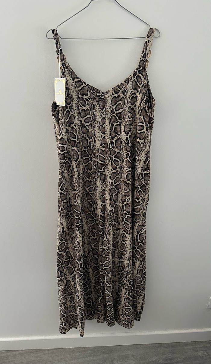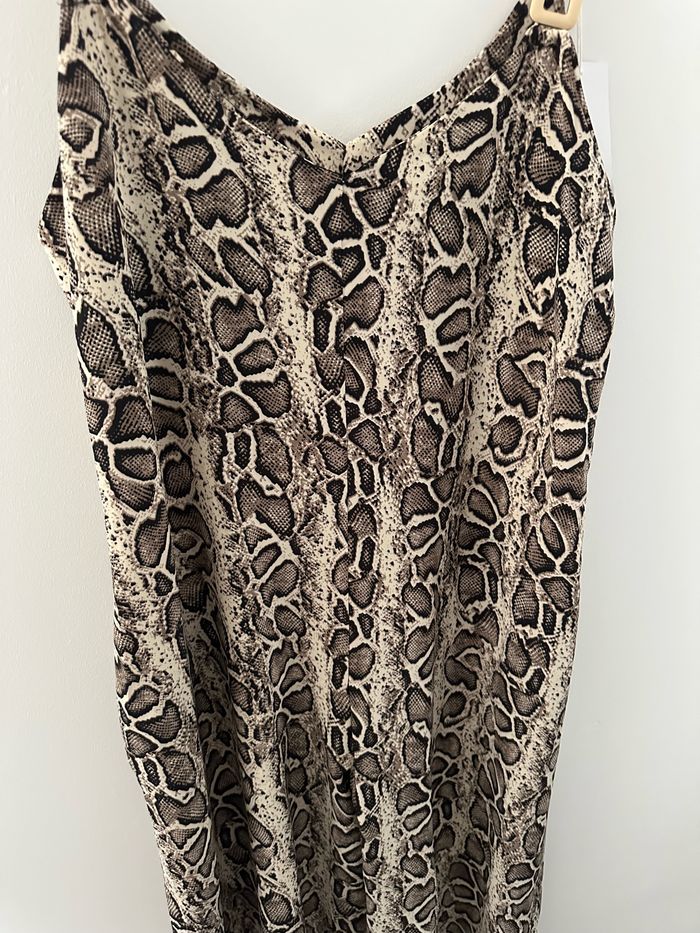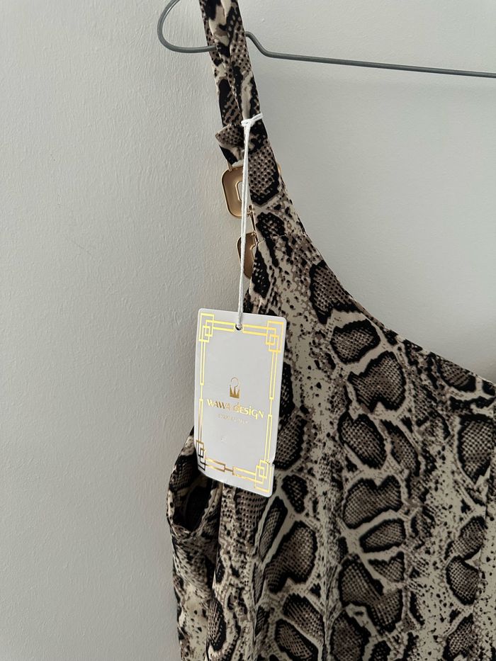 Combinaison - Neuve avec étiquette - Taille unique (ok du 36 au 40) Dimensions en bas de l’annonce - Modèle long - Jambes larges - Détails dorés sur les bretelles - Tissus fluide et stretch - Deux poches à la taille - Fines bretelles - Imprimés python serpent - Noir et beige crème - Fabrication italienne 🇮🇹 - 100% polyester - Prix d’achat: 48 euros Dimensions: - 53cm niveau aisselles - 135cm de long