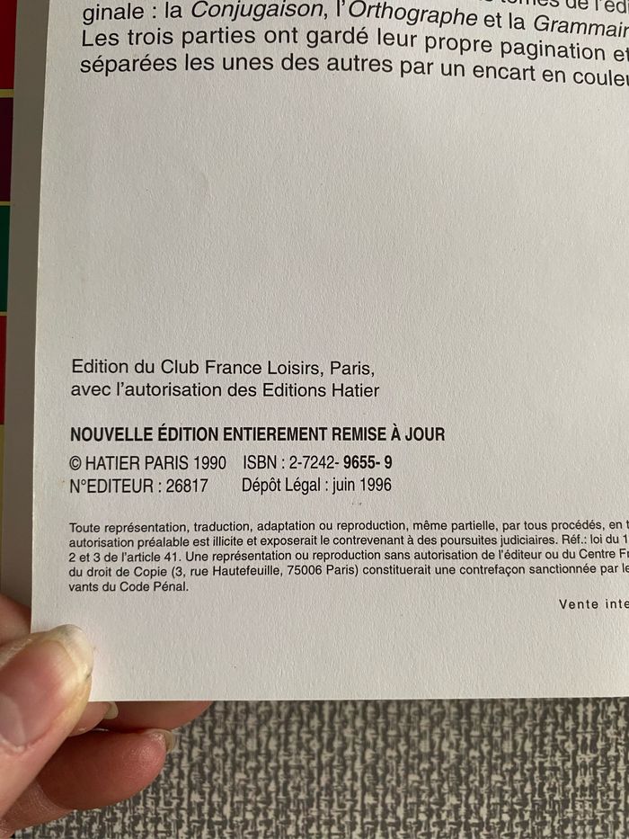 Livre le Bescherelle La Conjugaison L’orthographe La Grammaire Édition France Loisirs Année 1996 En très bonne état Envoie Rapide 👍