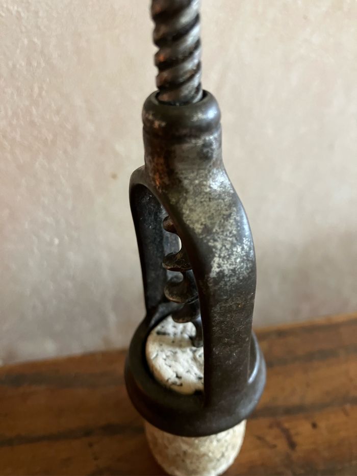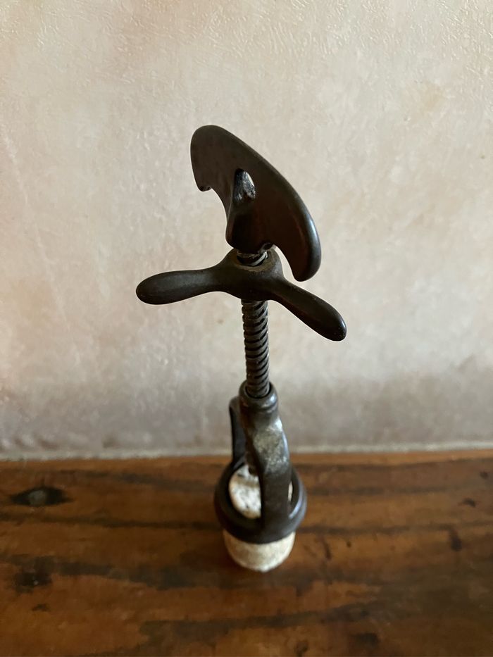 Ce tire bouchon à hélices est ancien. Date certainement des années 50-60, utilisés dans les bistrots. Il est en bon état même s’il porte quelques traces du temps (métal patiné) Fonctionnel Dimensions : 15 cm