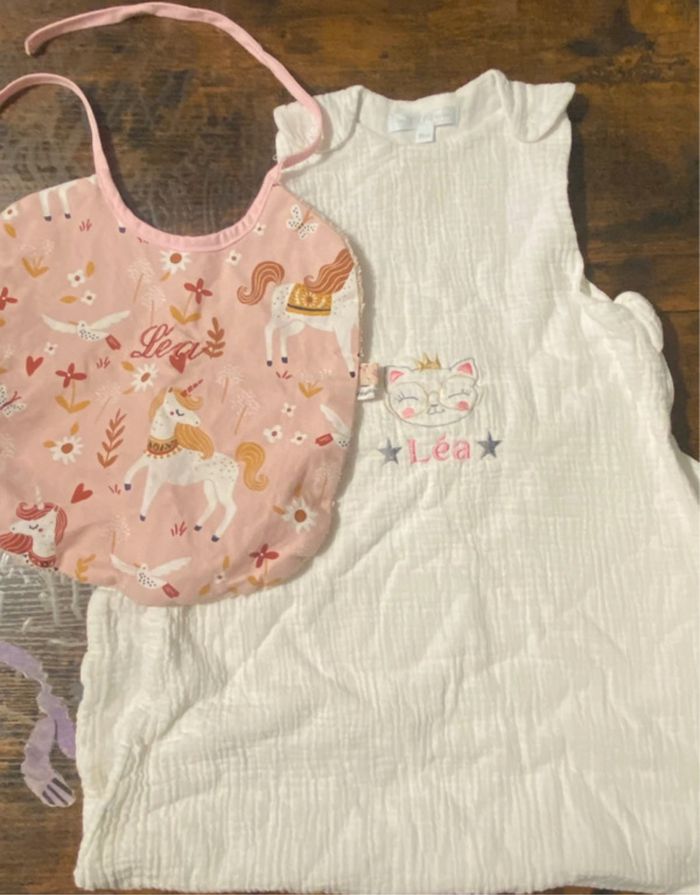 Lot composé d’une gigoteuse + bavoir brodé tout deux LÉA taille 90 cm