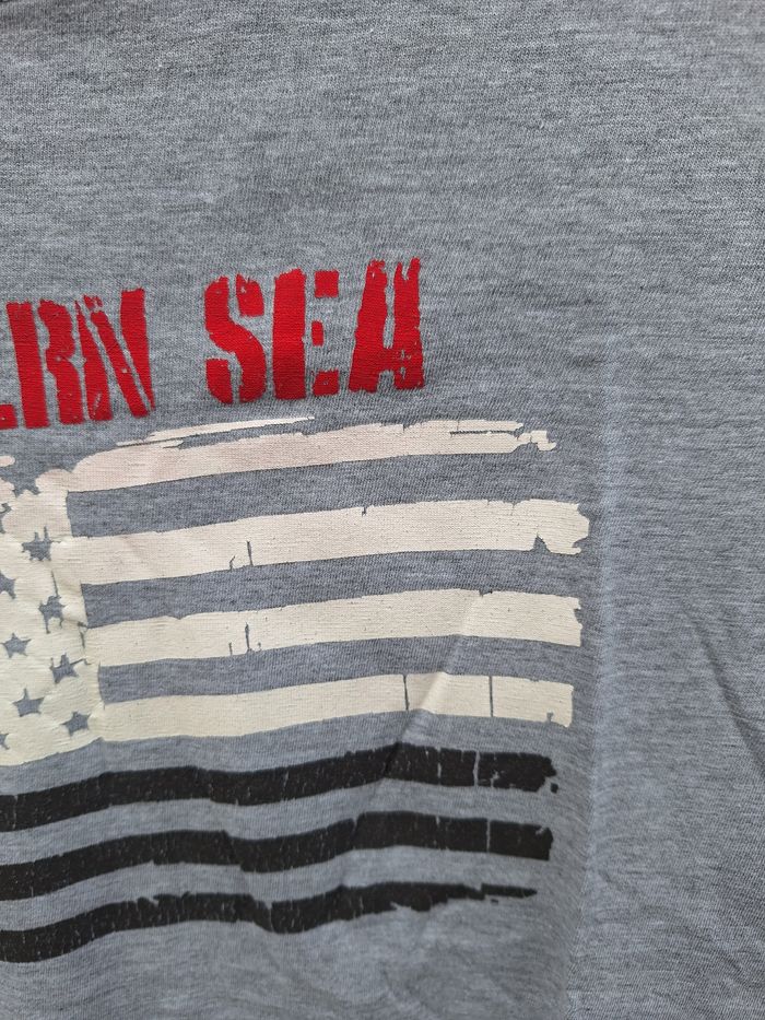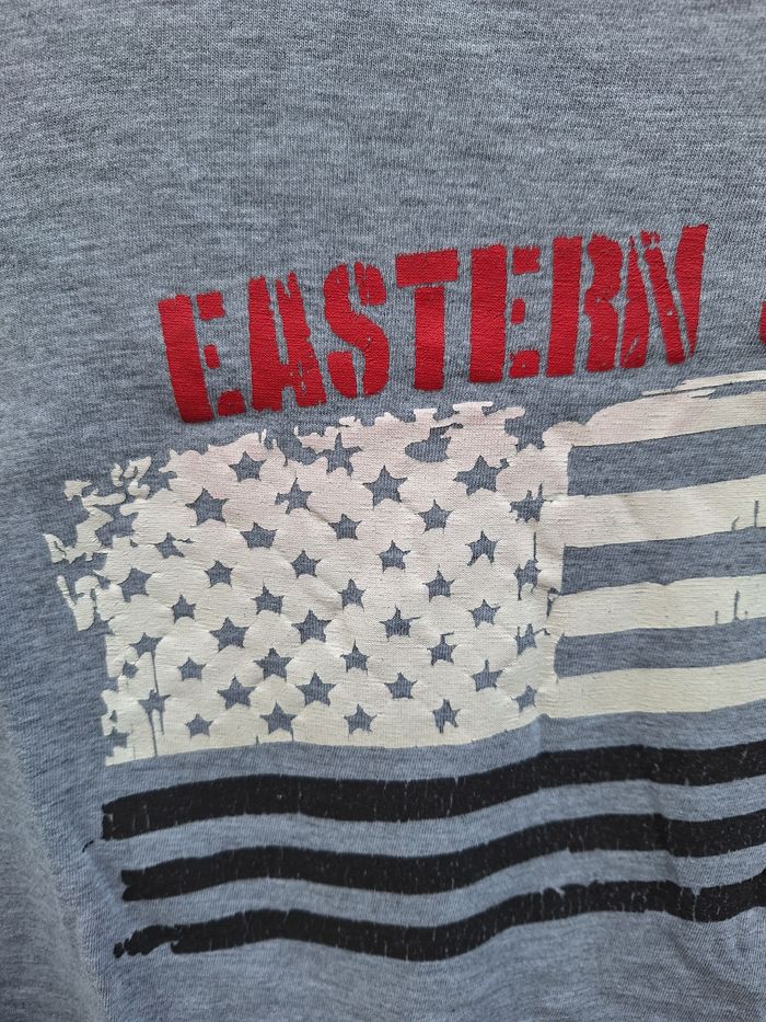 Bon état l'imprimé est craquelé, il y a un trou en bas d'une des manches et les coutures sous les aisselles sont fébriles
