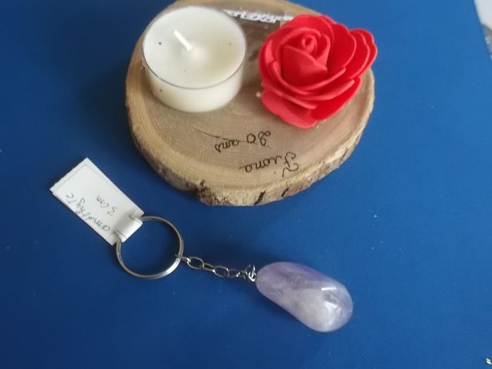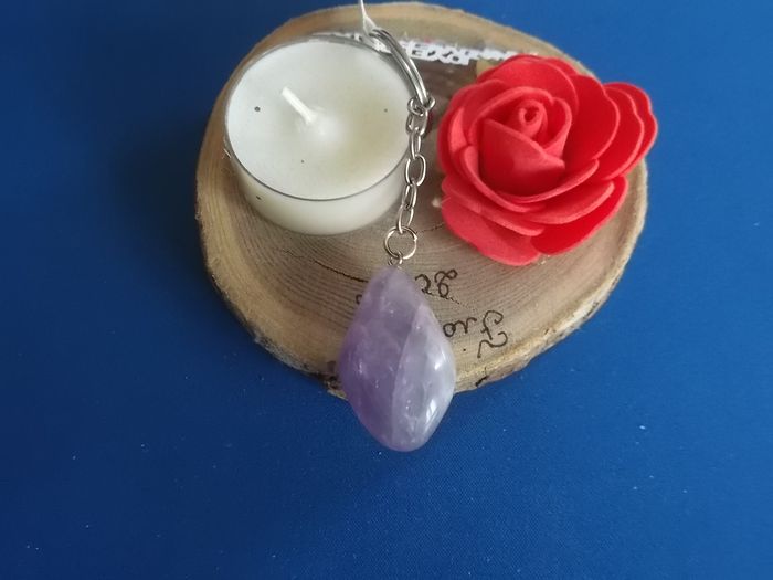 pour voir toute mes annonces bijoux tapez #pat62_bijoux porte clés améthyste roulée 3cm neuf L'Améthyste favorise l'élévation spirituelle, la concentration et la méditation. C'est la pierre qui stimule l'imagination, la créativité, la clarté de l'esprit, la sérénité. L'Améthyste apaiserait les angoisses et les colères. Minéral permettant un rééquilibrage mental. L'Améthyste dissiperait la colère, la peur et l’anxiété, allège la tristesse et le chagrin. L'Améthyste est la pierre de la sagesse et de l'humilité. Matériaux : Pierres naturelles (Améthyste) / Chaine Acier