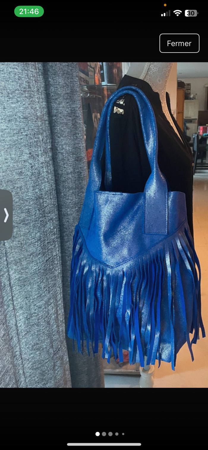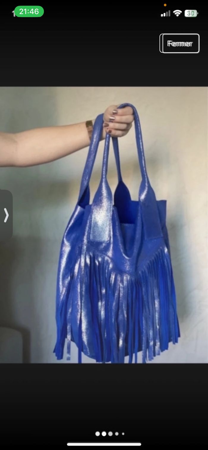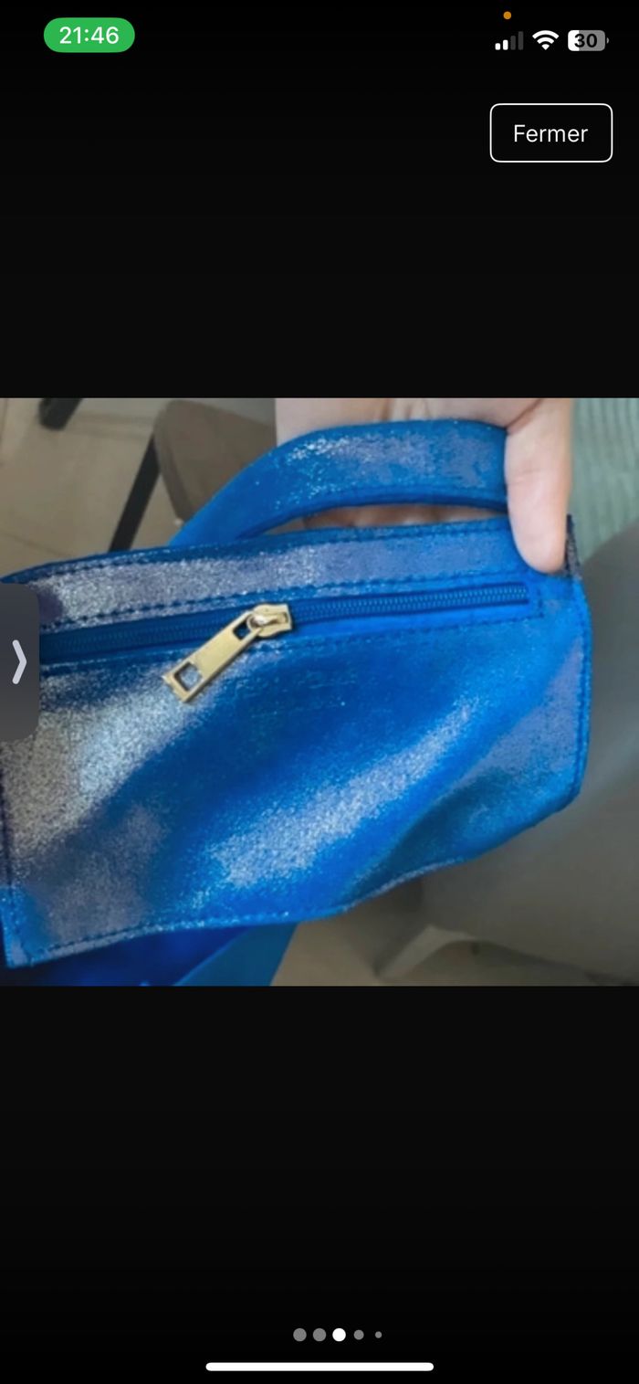 Sac en cuir Intérieur effet peau Bleu roi irisé Totalement neuf