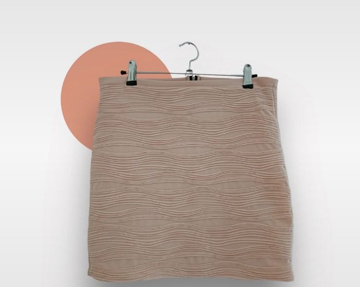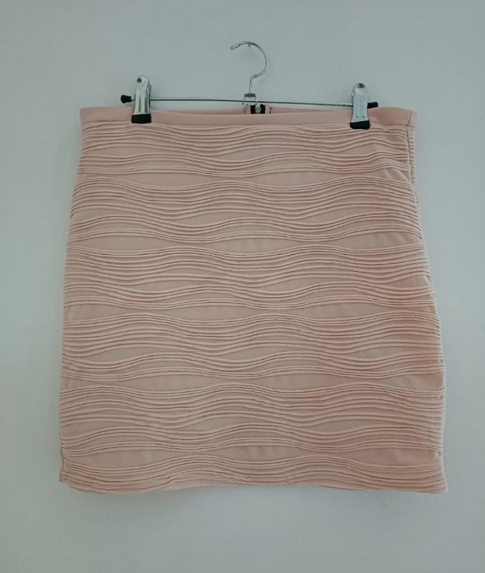 Mini-jupe couleur abricot à relief En super état Pensez à faire des lots les remises sont activés. Dressing moderne et à petit prix.