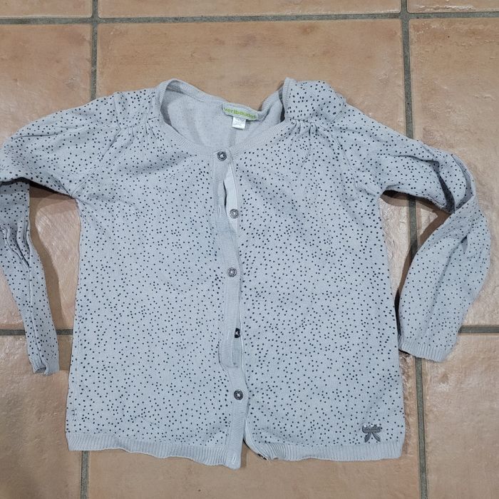 Gilet Vertbaudet 6 ans gris points noirs. Très bon état. Envoi dans la journée en mondial relay ou chronoshop2shop