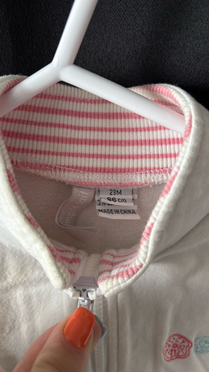 Couleur uni blanc avec fermeture éclair et motif Taille 23 mois