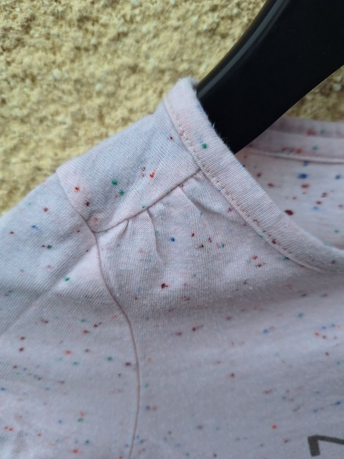 T-shirt à manches longues Marque Naf Naf Taille 6 ans 116 cm Couleur rose pâle chiné de petits points multicolores avec écriture de la marque en gris foncé Très bon état 🚨 Réductions activées sur les lots 🚨 🟡 2 articles -5% 🟠 3 articles -10% 🔴 5 articles et plus -15% #6ansfilleevaura76 #tshirt #nafnaf #6ans #116cm