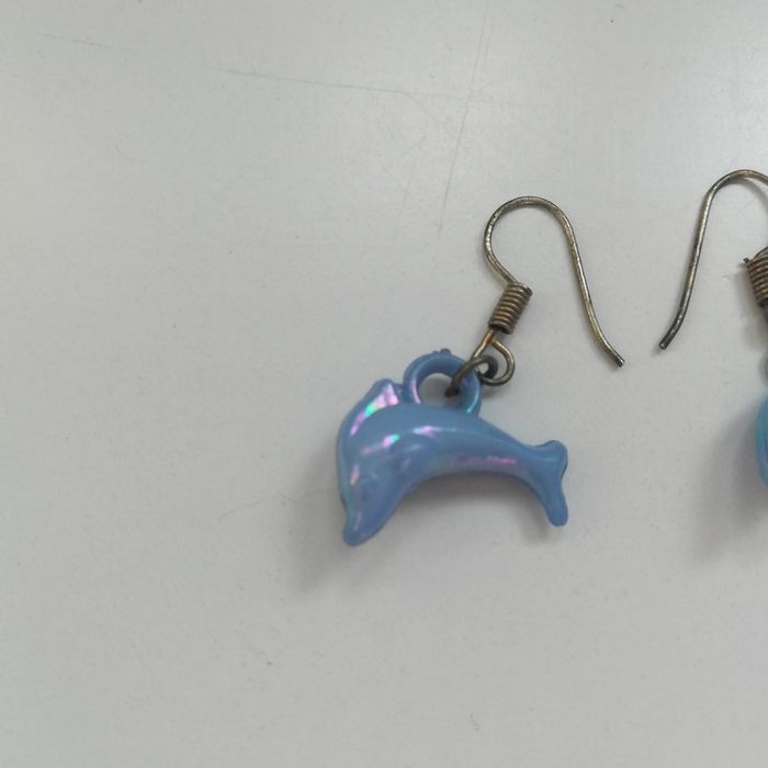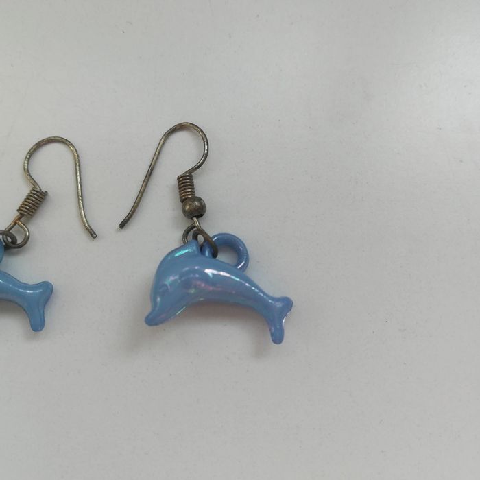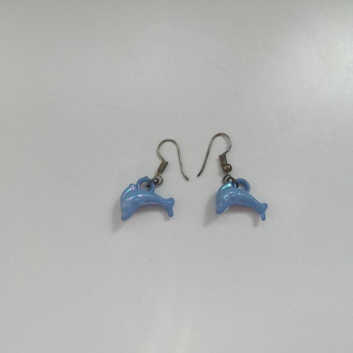 Vends une paire de boucles d'oreilles fantaisie dauphin bleue à reflets nacré