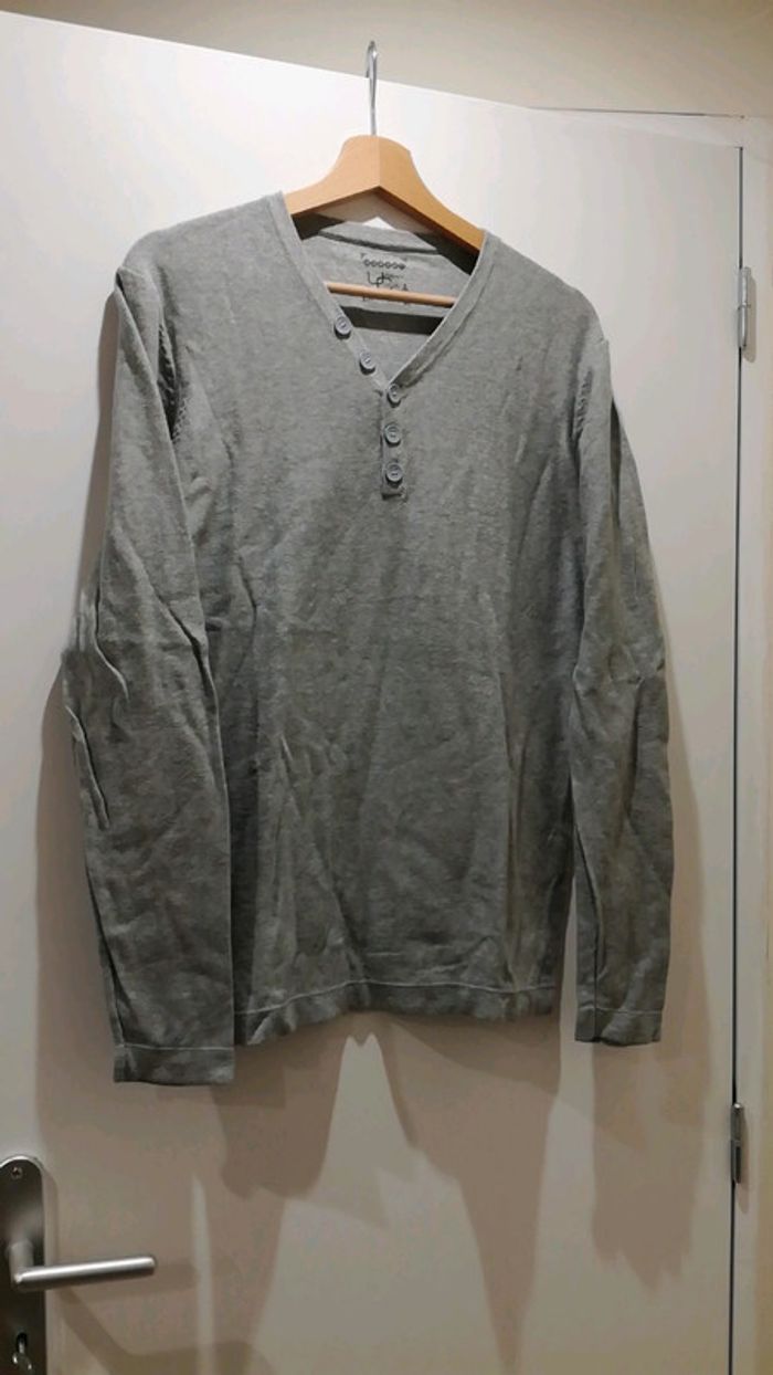 Pull léger gris clair, peut se porter sans t shirt Porté 1fois