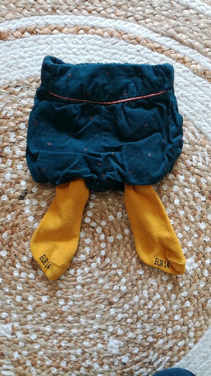Bloomer vert foncé et collant jaune Taille naissance (inscrit 1 mois mais taille petit)