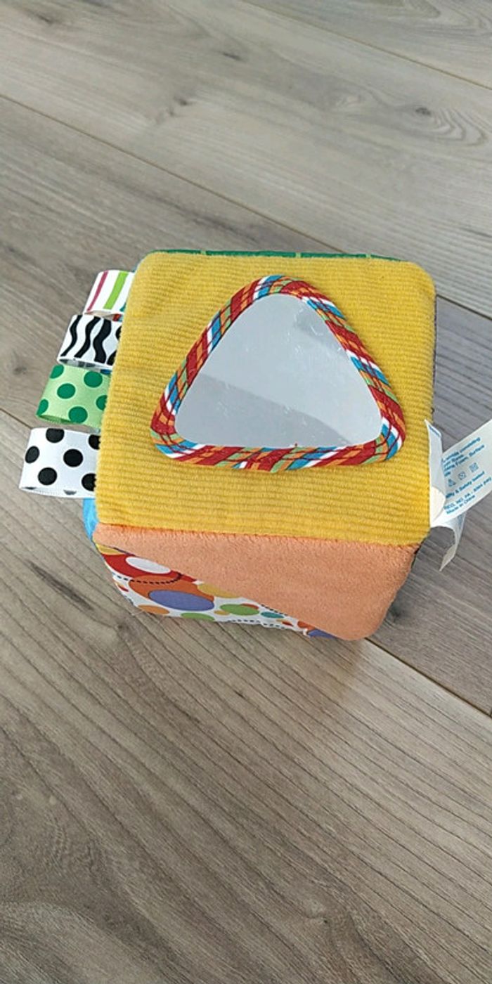 Cube d'éveil avec motif coloré, miroir (un peu rayé)