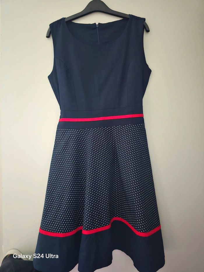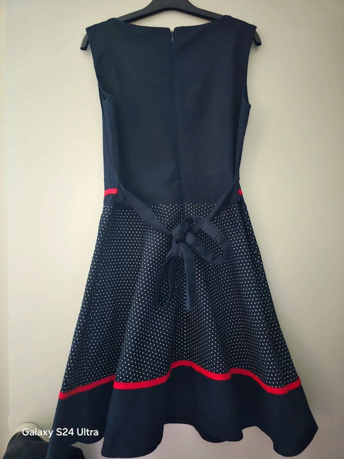 Robe bleu marine a pois blanc Taille M Sans marque En très bon etat général.