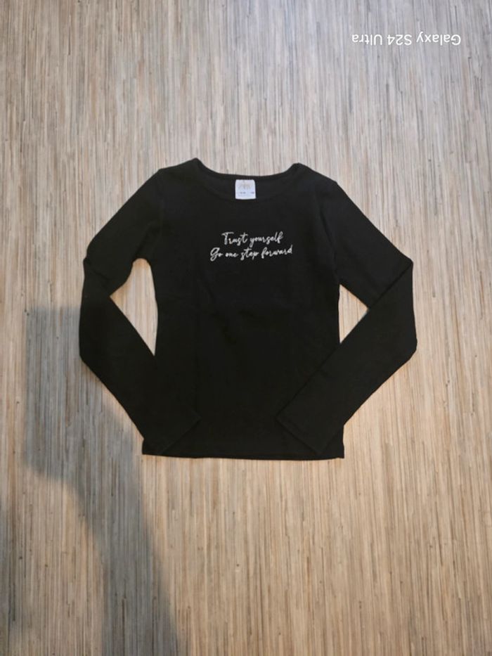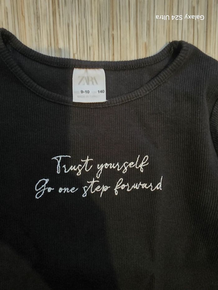Haut noir avec inscription en argenté Zara Taille 10 ans En très bon etat général.