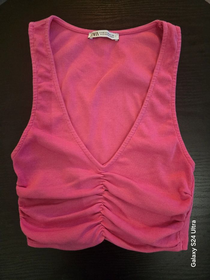 Débardeur crop top rose Zara Taille M En très bon etat général.