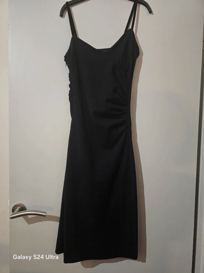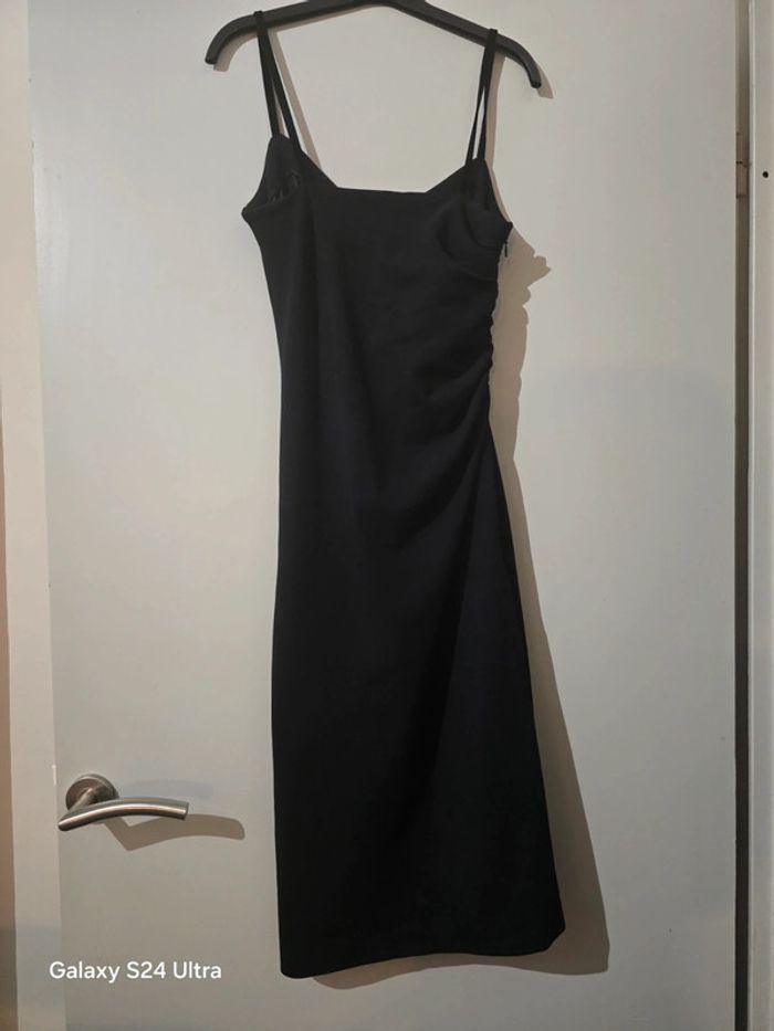 Robe moulante noire Mango Taille M En très bon etat général. Froncée au niveau de la taille. Bretelles en velours.