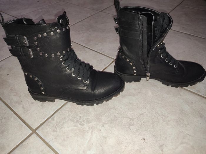 Elles sont en très bon état Il y a juste une éraflure sur l'avant de la chaussure, voir photo #bottines #bottinesnoires #bottinesfemme #cachecache