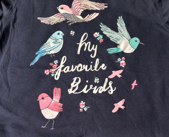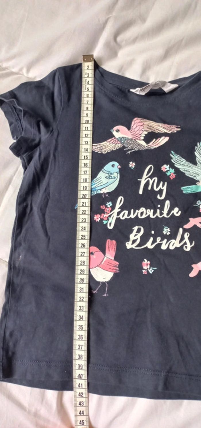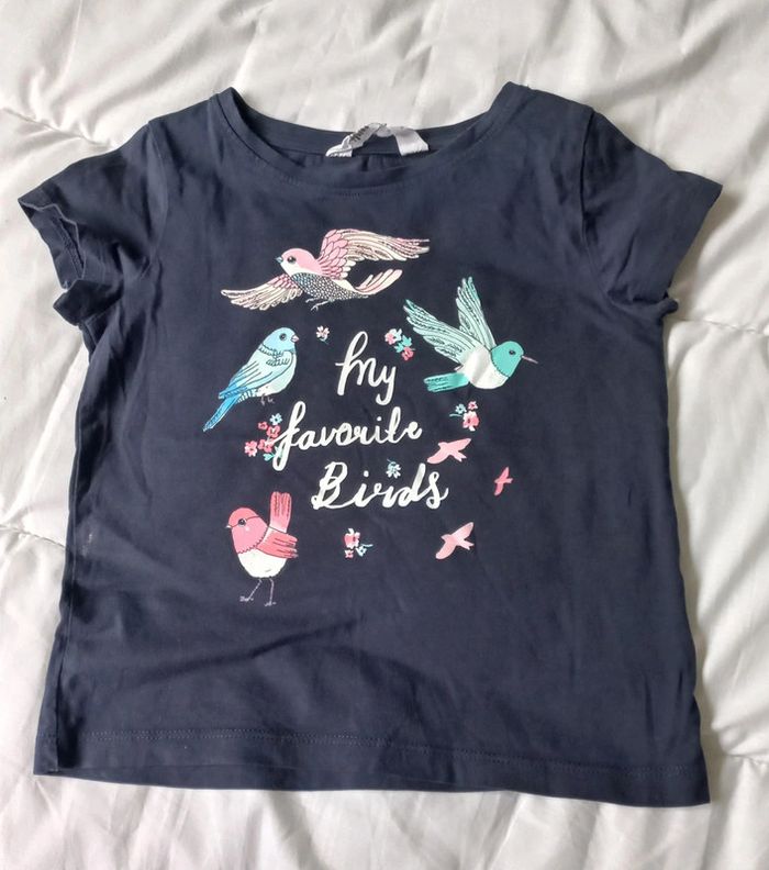 T-shirt bleu marine h&m Taille 4/6 ans Motifs oiseaux Traces de paillettes sur le côté mais en très bon état #scara4ans #scara5ans #scara6ans