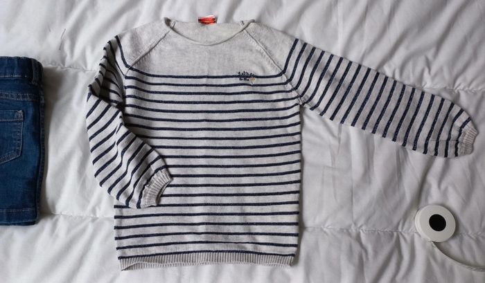 Pull gris rayé bleu type marinière t4ans - photo numéro 4