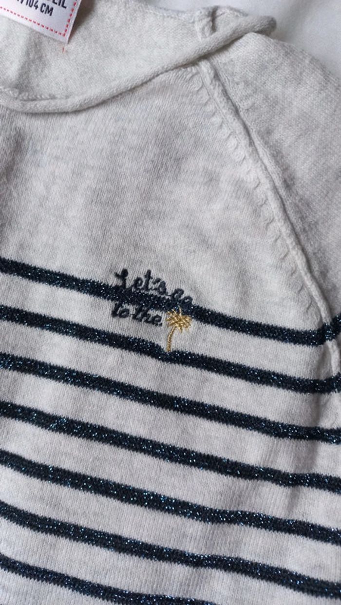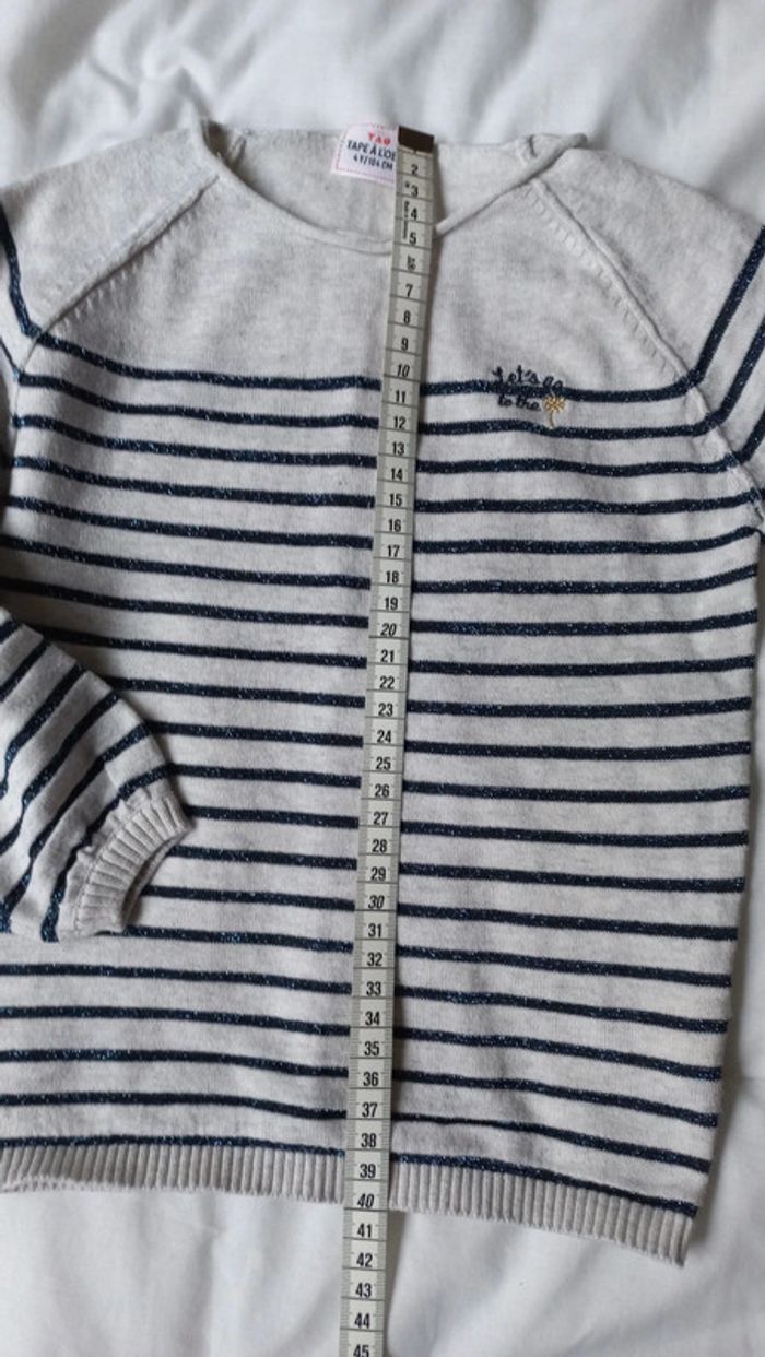 pull marinière blanc gris clair rayé bleu paillette très joli ! Tape à l'oeil taille 4 ans voir dimensions sur photo mi saison, plutôt léger dimensions sur photo , ni trou ni tache Excellent état mes autres ventes (vêtements et robes sergent major, DPAM, okaidi.... : #scara4ans #scara5ans #scara3ans