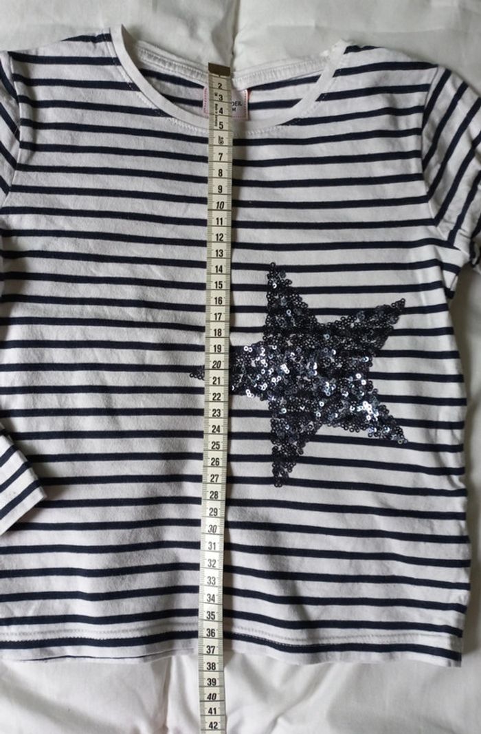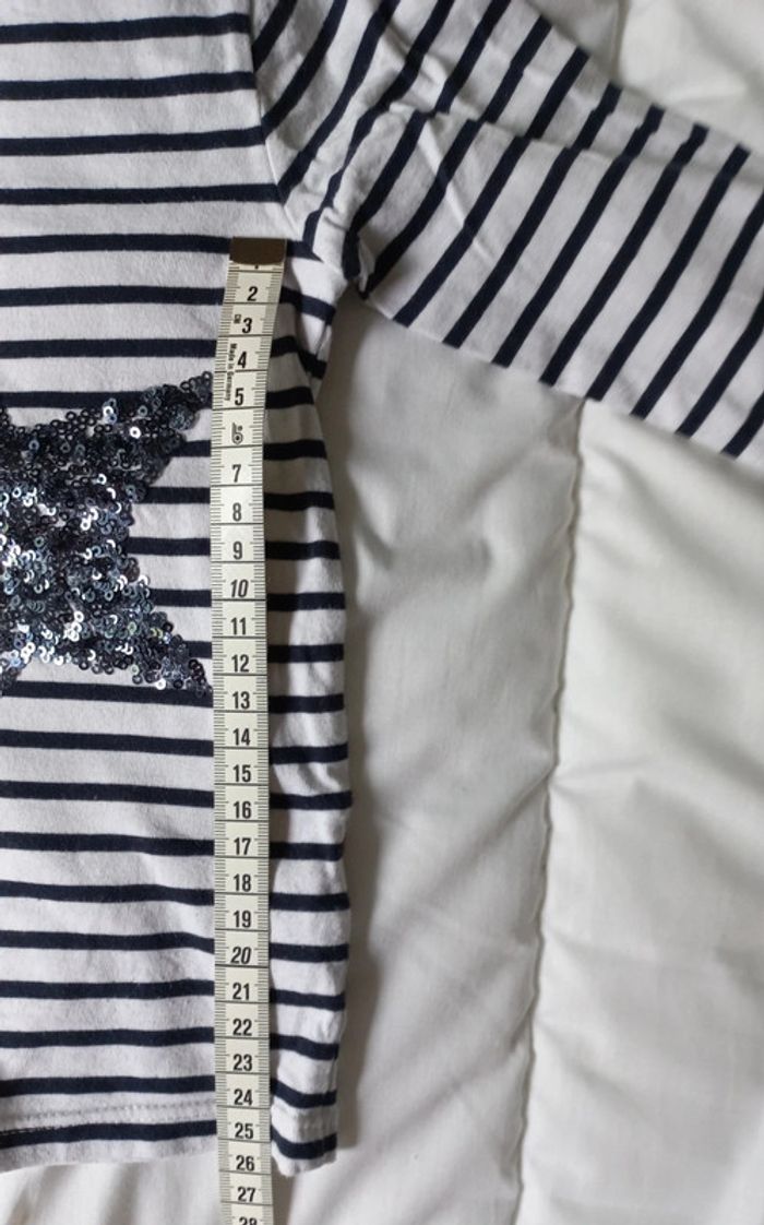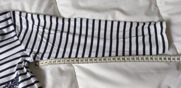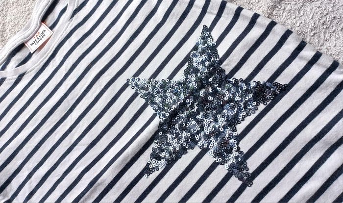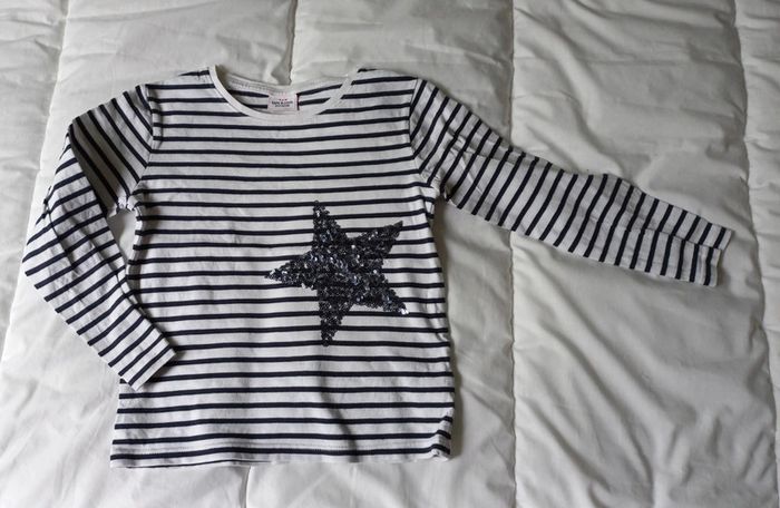 T-shirt manches longues Blanc rayé bleu marine étoile strass bleue Tape à œil taille 5 ans #scara4ans #scara5ans