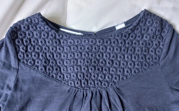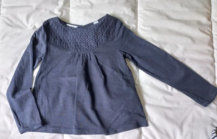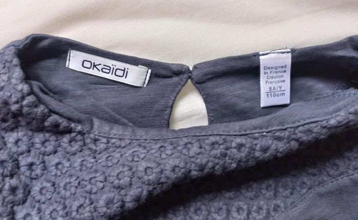 T-shirt bleu marine okaïdi Taille 5 ans Broderie sir le devant Bouton à l'arrière #scara4ans #scara5ans