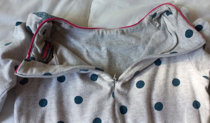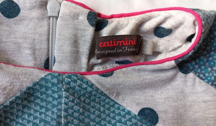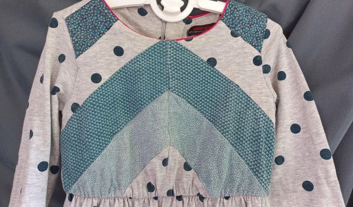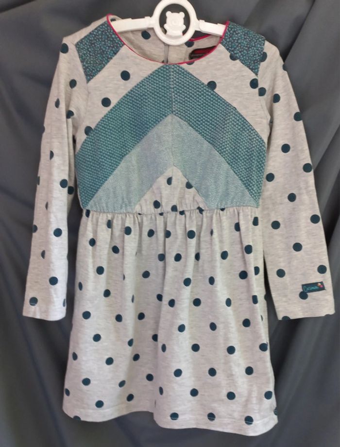 Tres jolie robe catimini grise motifs lignes vertes et pois Manches longues Automne / hiver Très jolie! Les couleurs sont moins franches qu à l'achat mais la robe reste en très bon état et très jolie #scara5ans #scara4ans #jolierobefille5ans #robecatimini