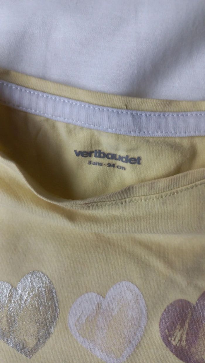 T-shirt jaune sans manche Motif coeurs Vert baudet Taille 3 ans Quelques traces / voir dernière photo #scara3ans #scara2ans