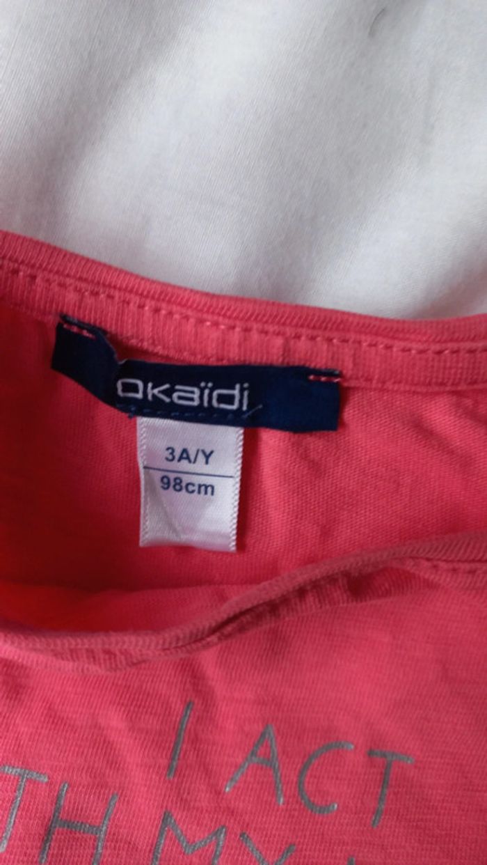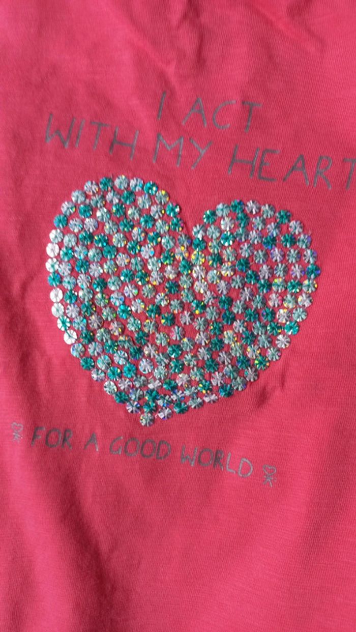 Tshirt okaidi rose Manches courtes Cœur strass vert blanc... #scara2ans #scara3ans