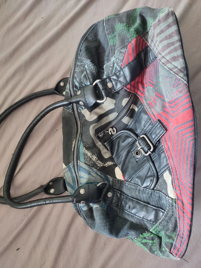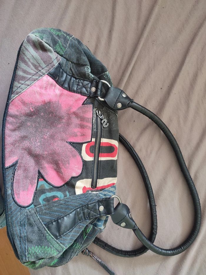 Il est en très bon état néanmoins il y a quelques endroits aux anses où le simili s'enlève Si plusieurs articles vous intéressent, veuillez me contacter pour créer un lot 😊 #sacàmain #desigual