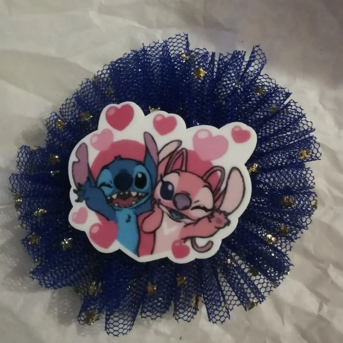 Pince à cheveux Stitch bleu/rose avec tulle bleu et étoiles dorées neuve
