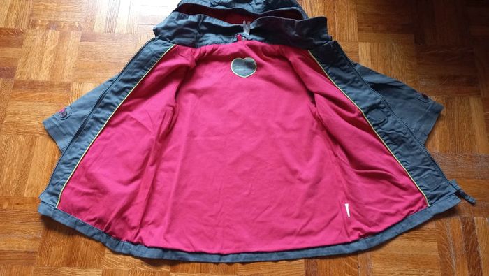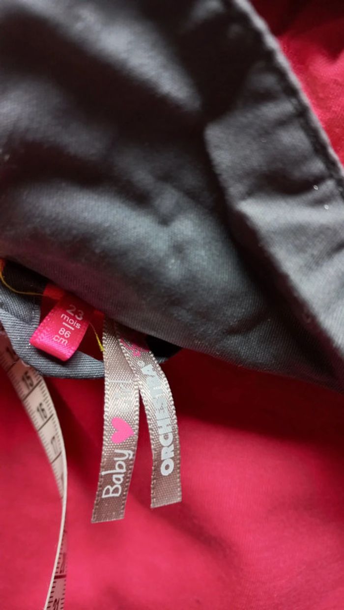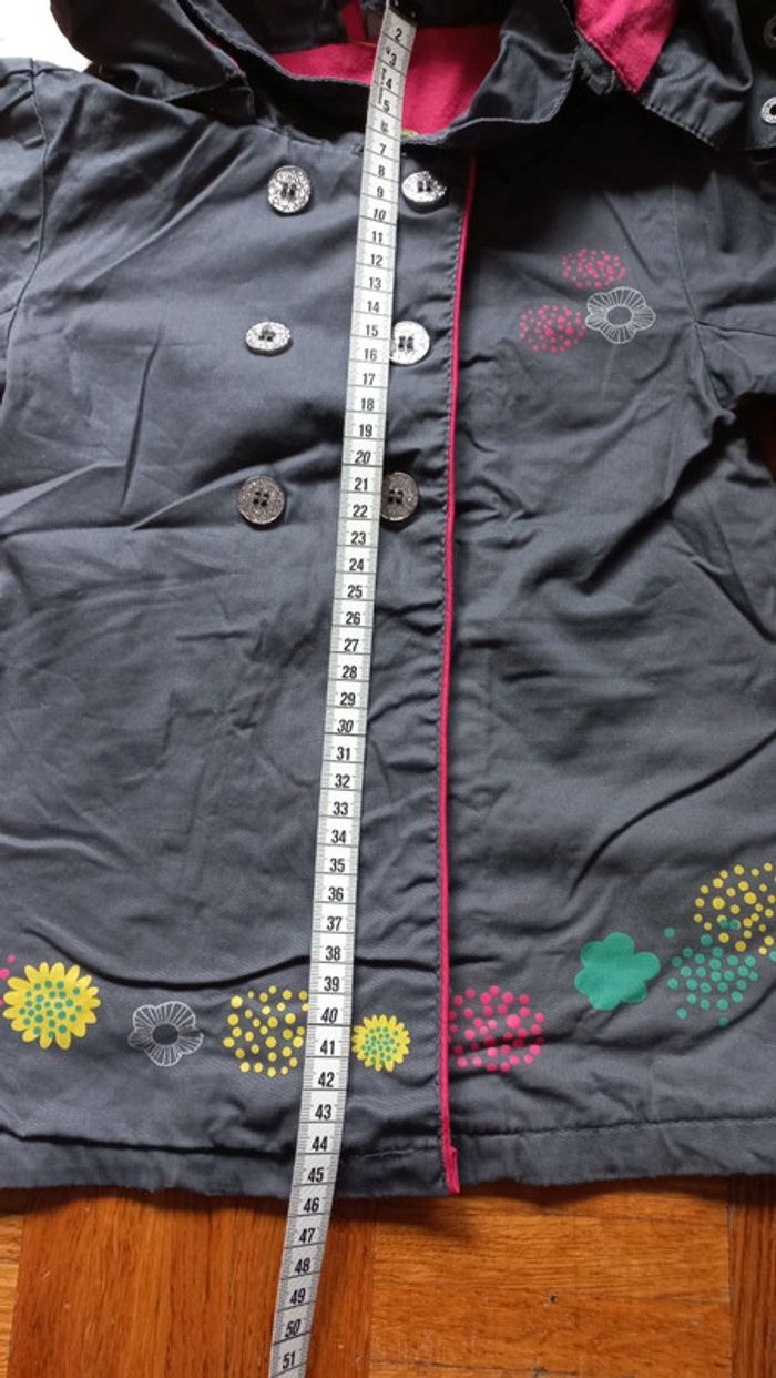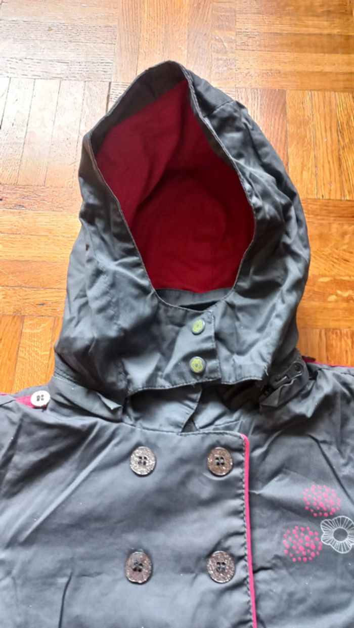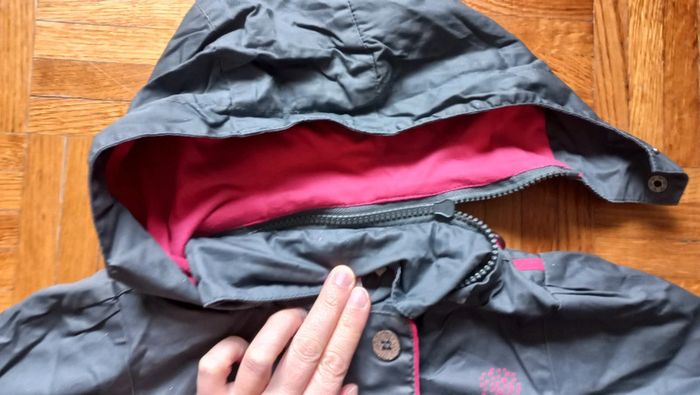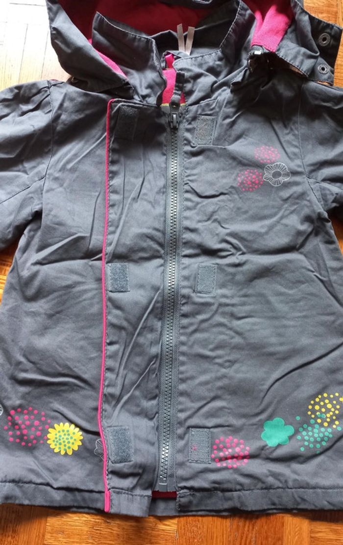 Veste imperméable orchestra taille 2 ans Mi saison Couleur tirant vers les gris avec paillettes Intérieur rose Fermeture zip / fonctionne parfaitement + scratch Capuche détachable + pressions sur la capuche #scara18mois #scara2ans
