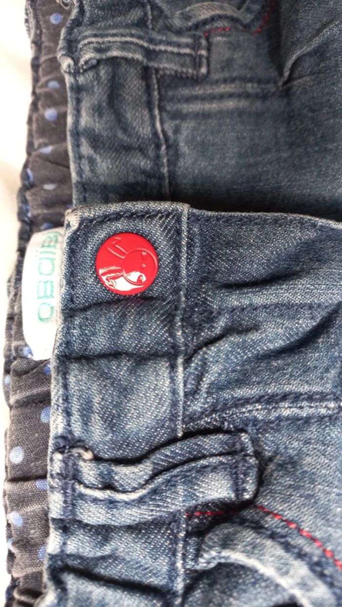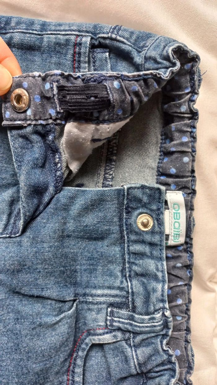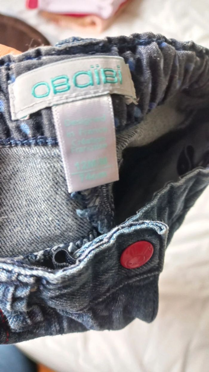 Jeans obaïbi 12 mois Taille réglable, joli bouton Pression motif lapin rouge Poches à l'arrière #scarabebe #scara9mois #scara12mois