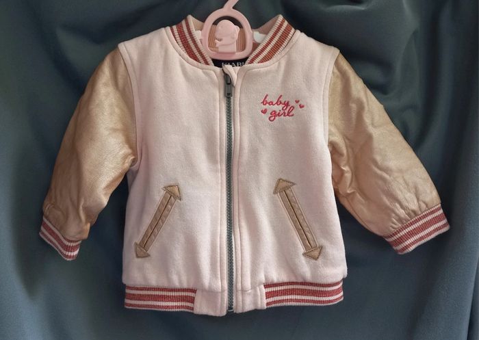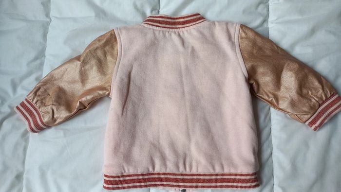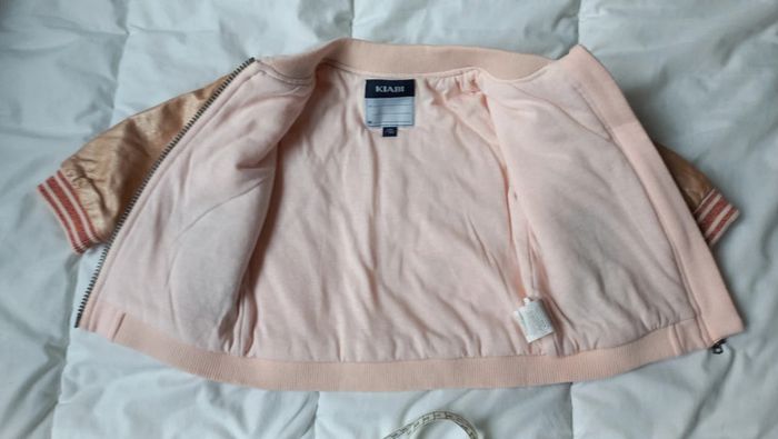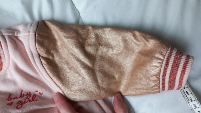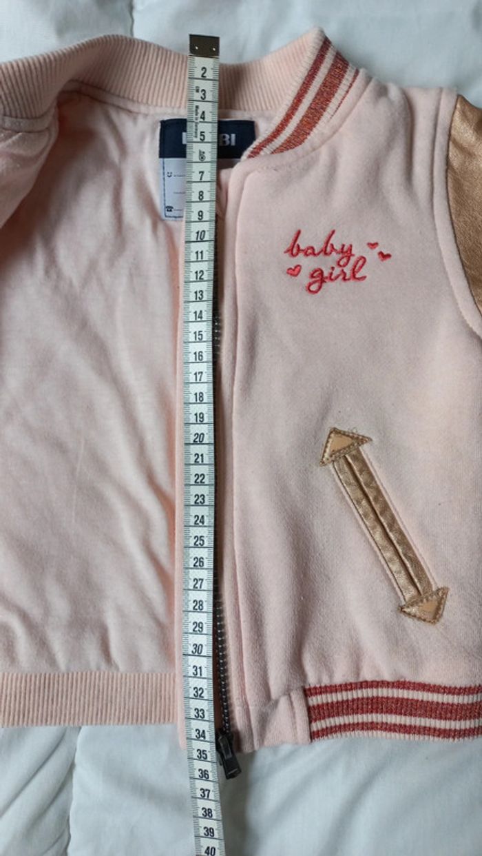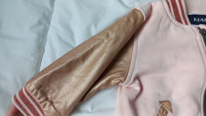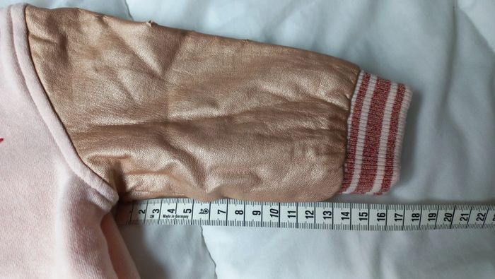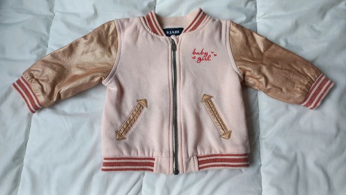 Blouson style aviateur Veste bomber Fille taille 12 mois Marque kiabi dimensions sur photo Fermeture éclair fonctionne ok simili cuir sur les manches je pense , quelques marques d'usure sur la manche gauche #scarabebe #scara9mois #scara12mois