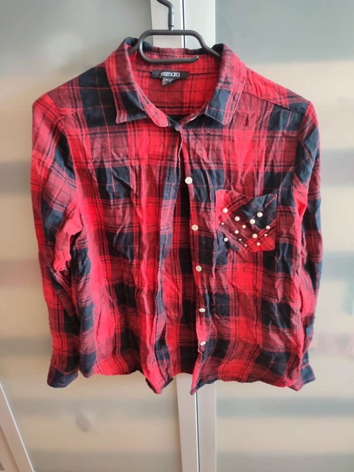 A été portée mais est en très bon état. Le bouton de rechange est encore sur l'étiquette #leiningerverotaille36 #taille36 #chemise #chemisefemme #chemiseacarreaux #esmara