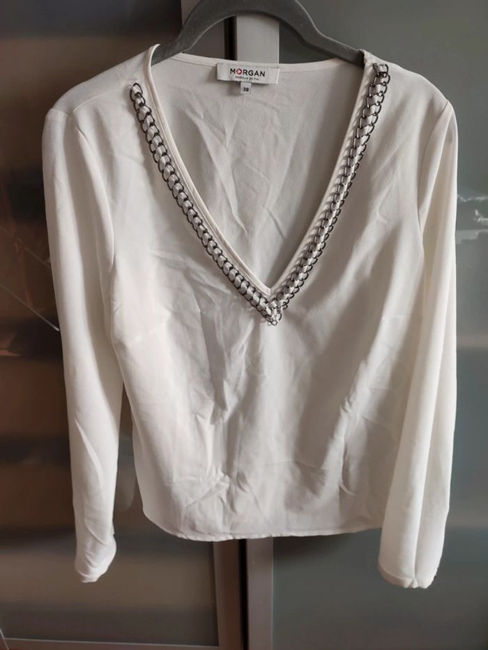 A été portée mais est en très bon état La couleur est blanc cassé #leiningerverotaille38 #blouse #blousefemme #blouseblanche #morgan #morgandetoi #colv #taille38