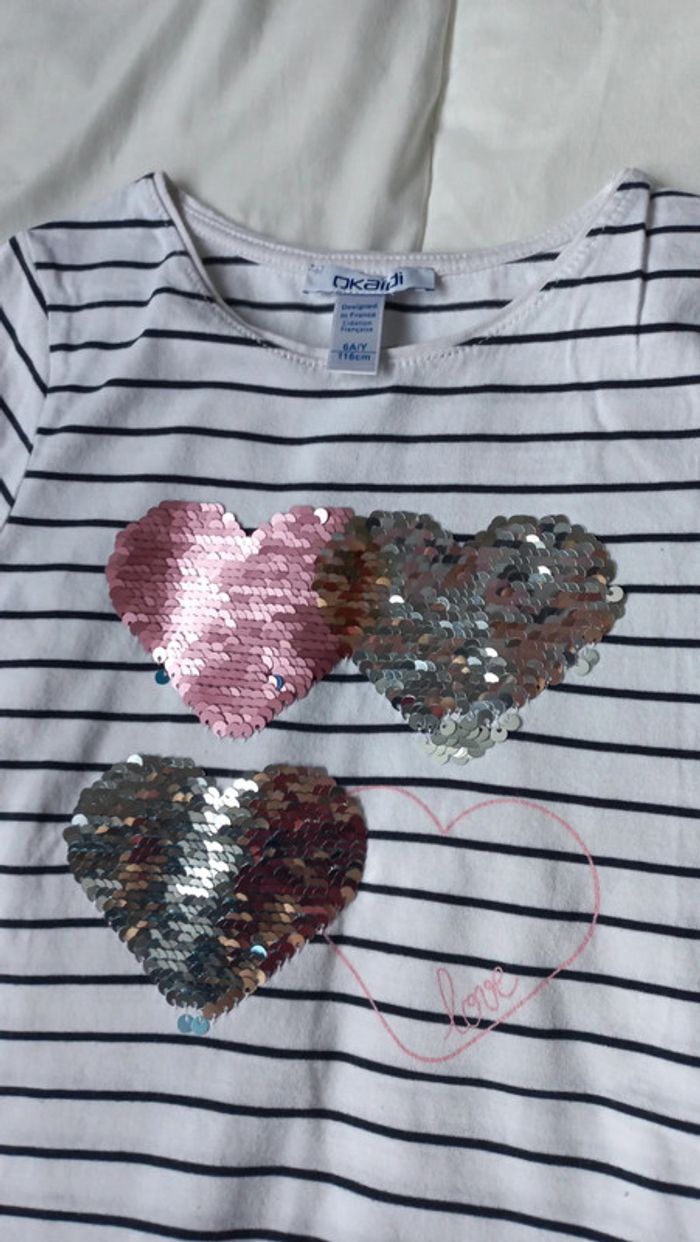 T-shirt marinière avec cœurs okaidi t6 - photo numéro 5