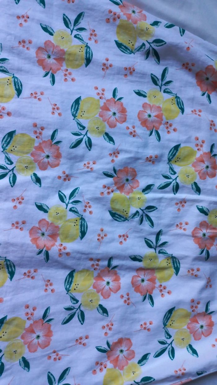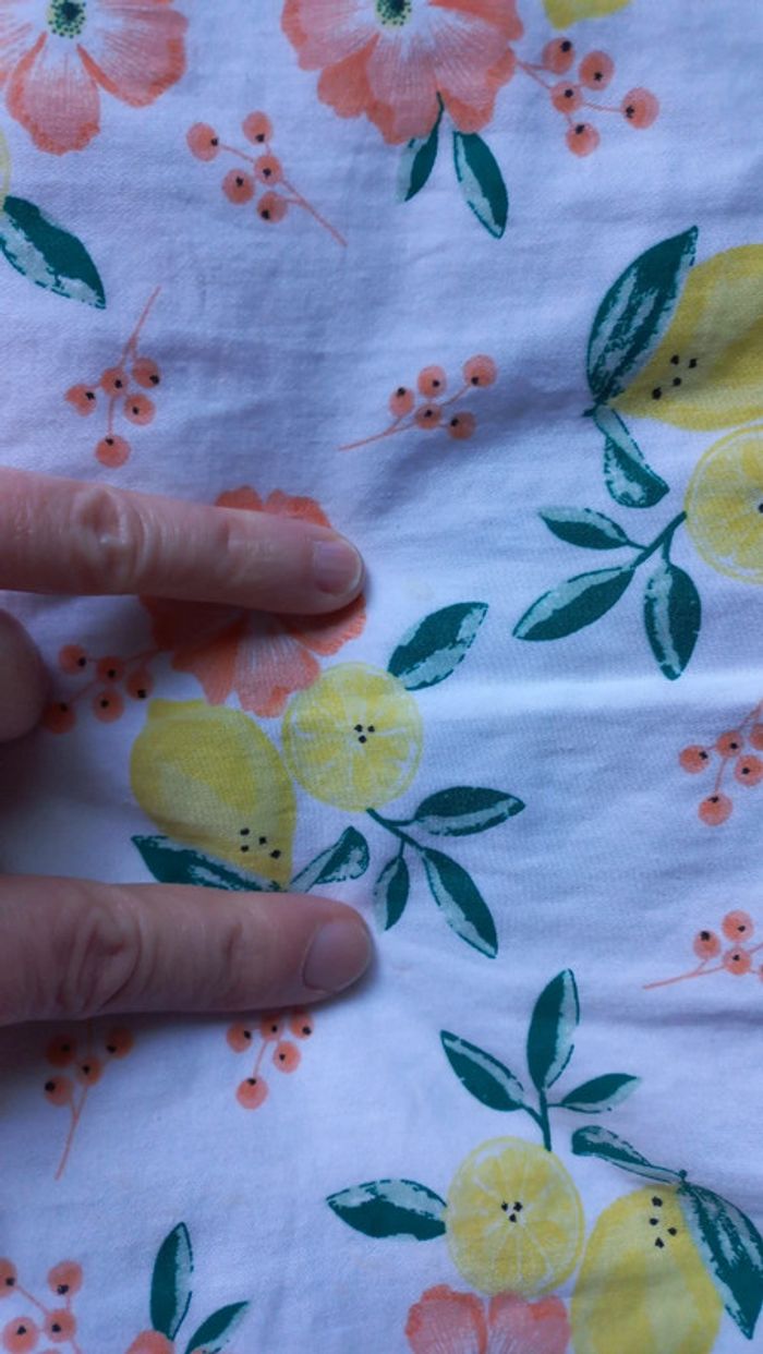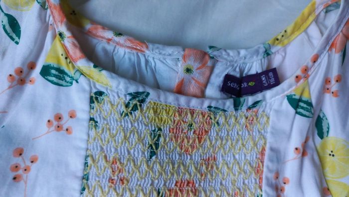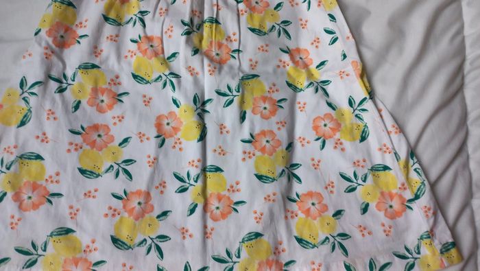 Tres jolie robe printemps été sergent major Taille 6 ans Blanche motifs feuilles fleurs orange citrons jaune Fermeture dans le haut. Fonctionne. Doublure blanche Voir dimensions sur photos Quelques taches peu visibles. Voir dernières photos #scara5ans #scara6ans