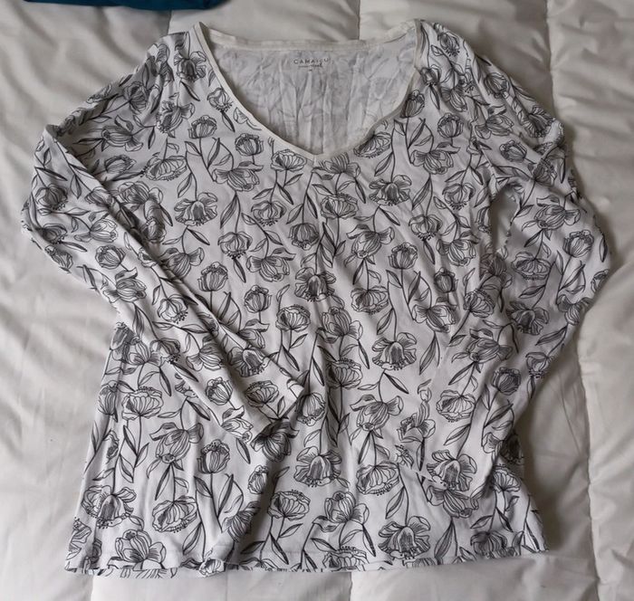 T-shirt camaieu blanc fleurs noires t M - photo numéro 1