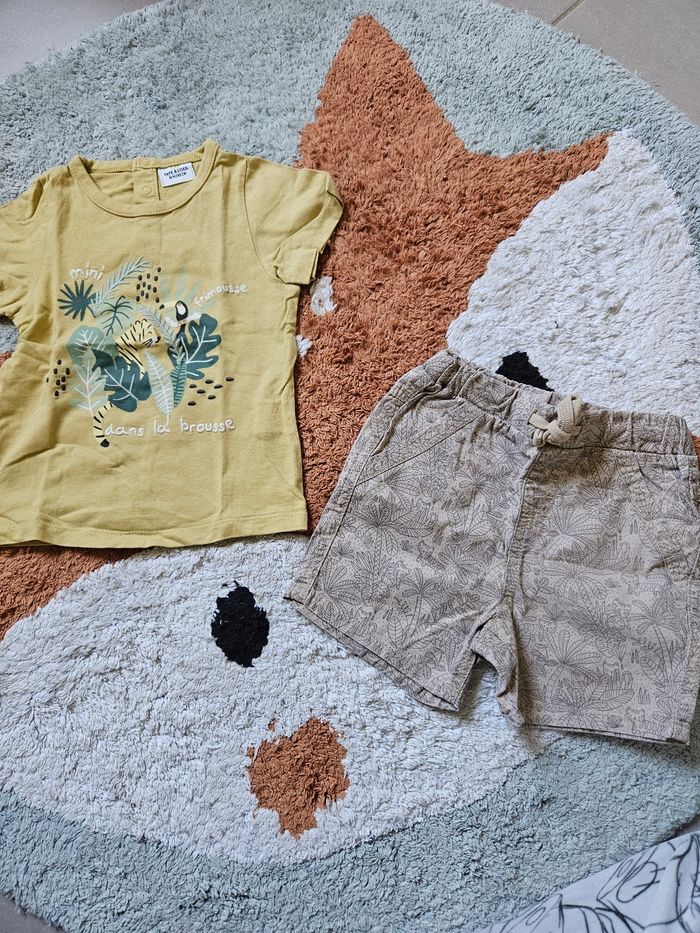 Ensemble jungle en taille 18mois de la marque Tape à l'œil pour le t-shirt et Kiabi pour le short En très bon état J'ai d'autres articles de mon fils que je vais rajouter petit a petit, n'hésitez pas à jeter un coup d'œil #NoaM0604 #NoaM18mois
