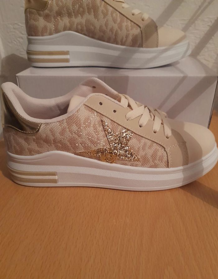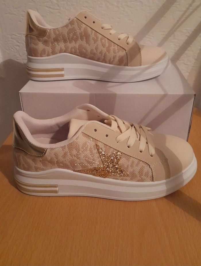 Belle paire de baskets aux couleurs de saison, achetées dans une boutique privée. Hauteur de la semelle : 3 cm. Neuves et dans la boîte d'origine.