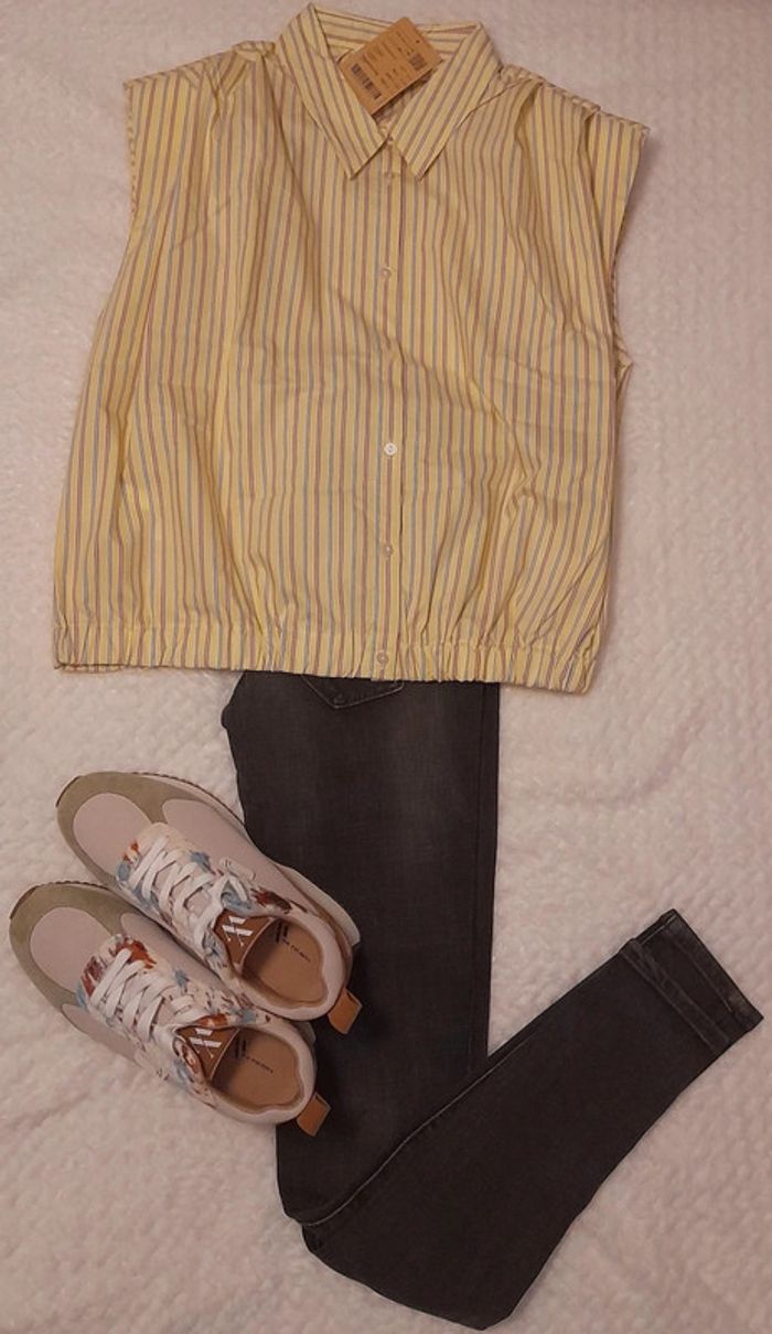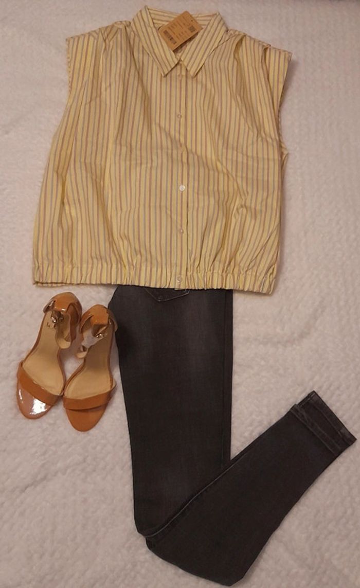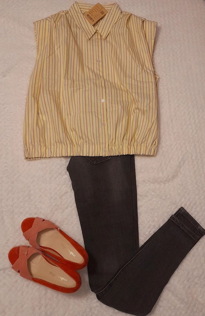 Chemisier en coton, neuf vendu avec étiquette d'origine (prix d'origine : 25,95 €). * Finitions : léger élastique sur les deux côtés en bas & épaulettes discrètes quu font leur effet (cf. photos). ☆ Possible de discuter du prix. => Gagnons du temps : n'attendez pas et contactez-moi directement :) #jiaime92taille42 #envoirapideetsoigné #chemisier42 #chemisierrayures #chemisierrayures42 #promod #ete #ete2023 #chemisierpromod #chemisierfemme #chemisierfemme4042 #sansmanches #chemisiersansmanches #sansmanchesfemme #chemisierfemme42 #chemisierfemme4042