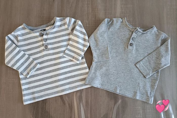 Lot de 2 T Shirts manches longues encolure à boutons 3 mois