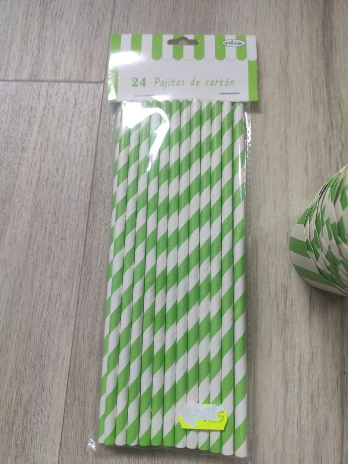 Plateau, paille, boîte,  pots, papier vert et blanc