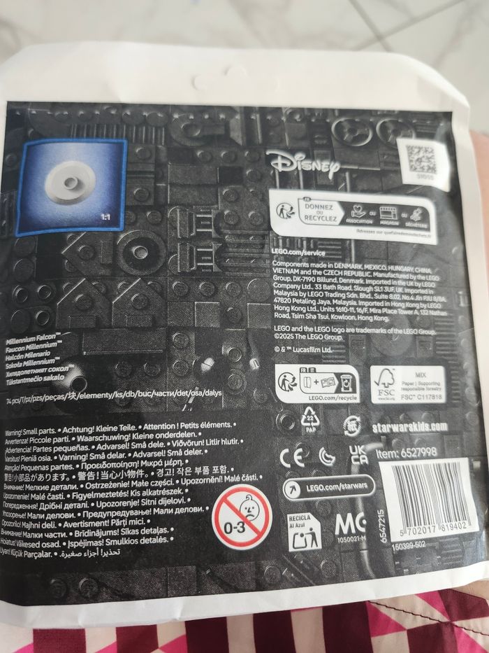 Neuf, N'hesitez pas à faire des lots. Description LEGO® Star Wars TM: Faucon Millennium™ miniature Invitez les jeunes fans à créer et exposer un modèle réduit en briques de l’emblématique Faucon Millenium, également appelé « Le tas de ferraille le plus rapide de la galaxie » ! Marque: LEGO Thème: Star Wars TM Âge: 6 - 99 Total des pièces: 74 Date de lancement: 01-03-2025 Poids: 55 gramme Dimensions: 17,00cm x 18,00cm x 3,00cm